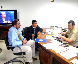 DRELM - 19/01/2012.- Las instituciones educativas bajo la jurisdicción de la Unidad de Gestión Educativa Local Nro. 03 recibirán mayor seguridad y su personal de vigilancia será asesorado en materia de seguridad por la Policía Nacional del Perú, anunció el director de la Región Policial Lima, general PNP Aldo Guillermo Miranda Soria, luego de reunirse con el director de la UGEL Marco Antonio Arriaga La Rosa.